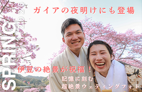 小野写真館50周年記念!一生に一度のウェディングを、河津桜の美しい風景の中で。通常165,000円のところ、今なら98,000円(税抜)で撮影可能!早春の思い出をカタチにしませんか?